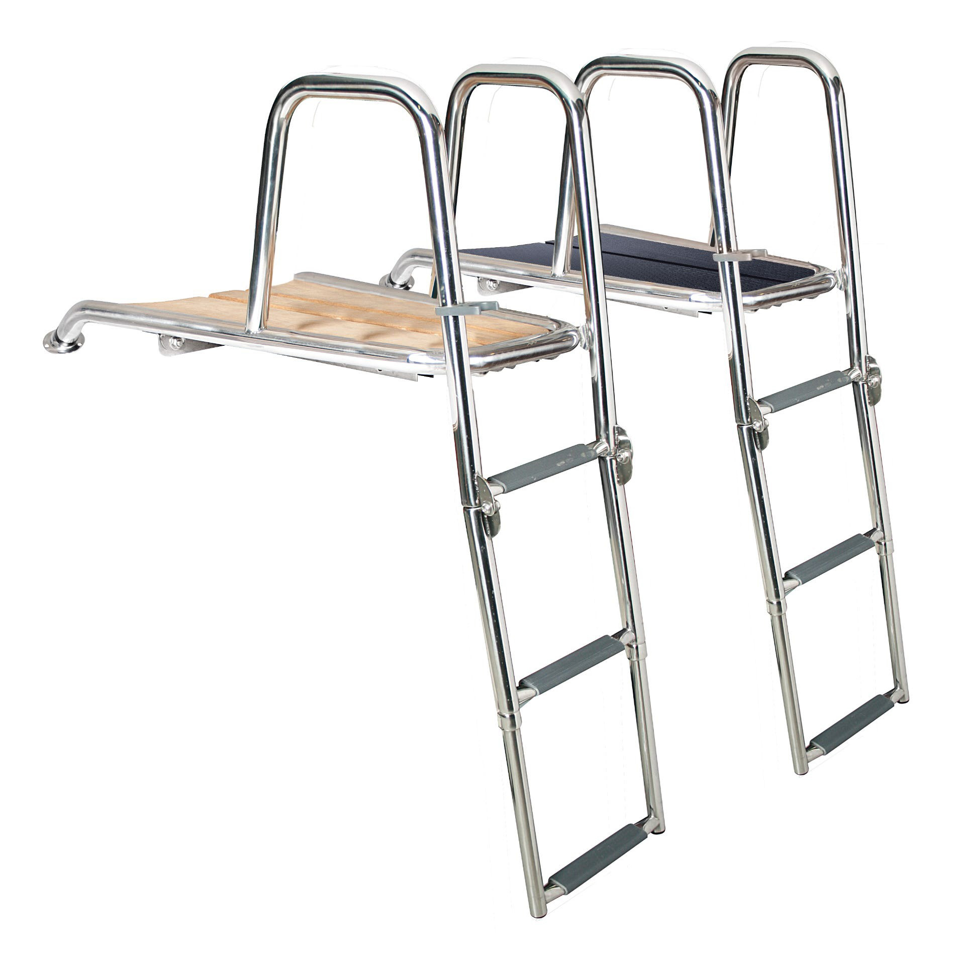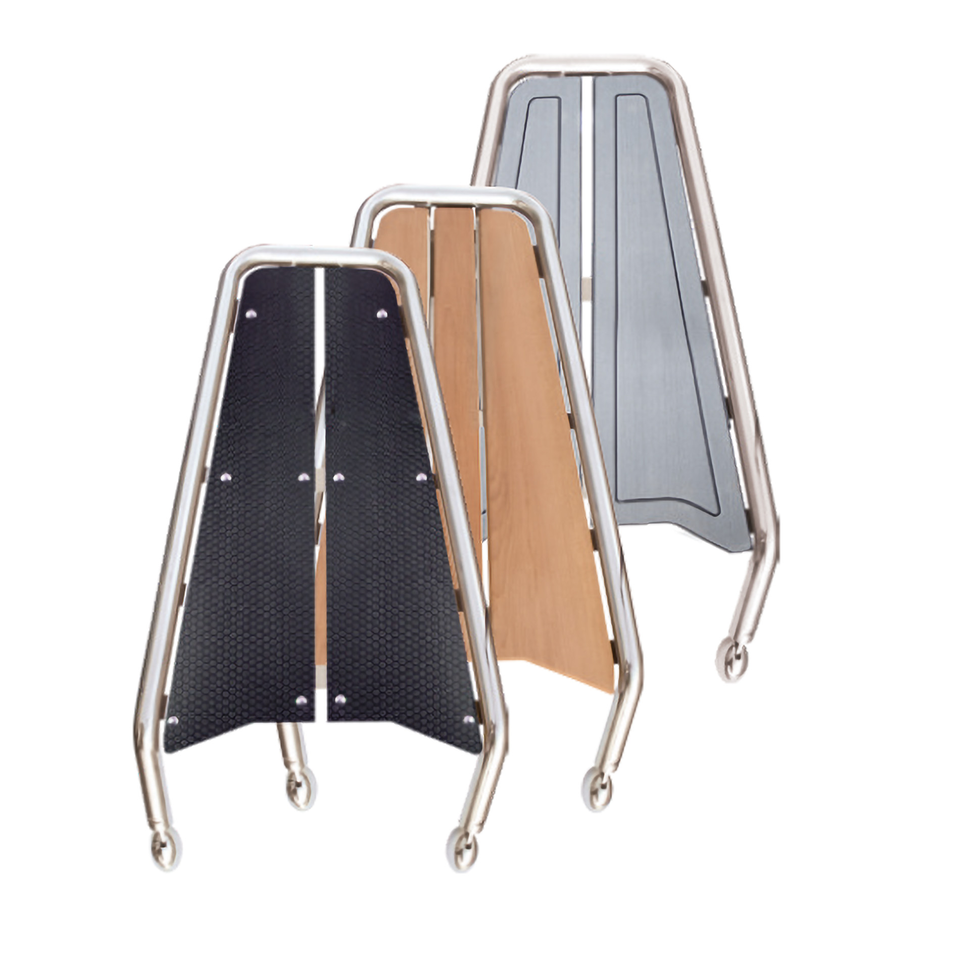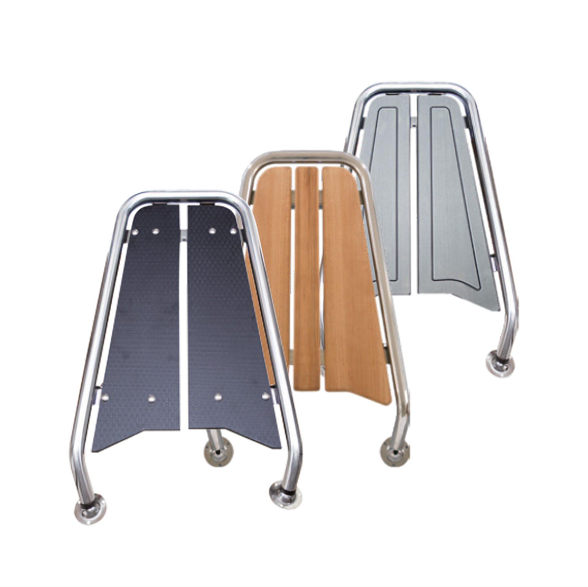 For powerboats between 18 to 25 feet, a ladder in casing or a hook ladder can be added. You can choose between teak, blackline only, or blackline with EVA-decking on top.