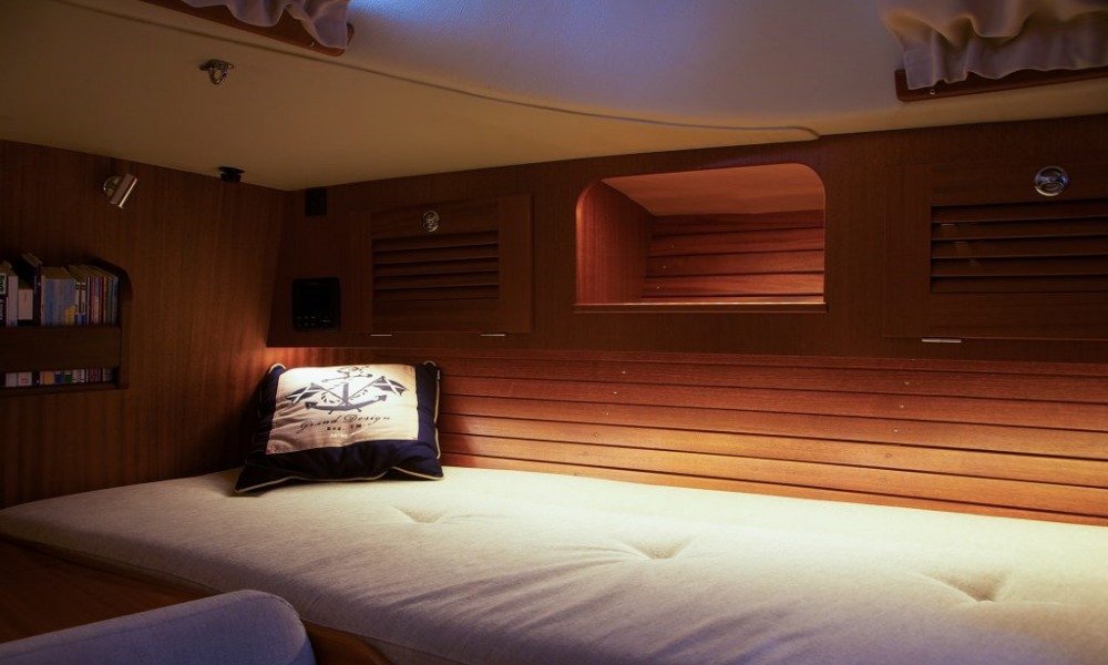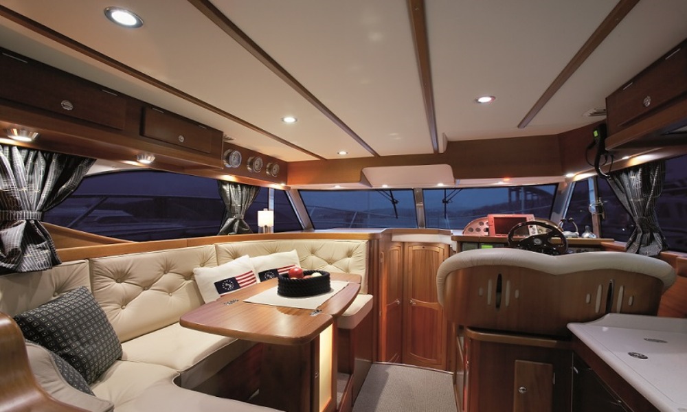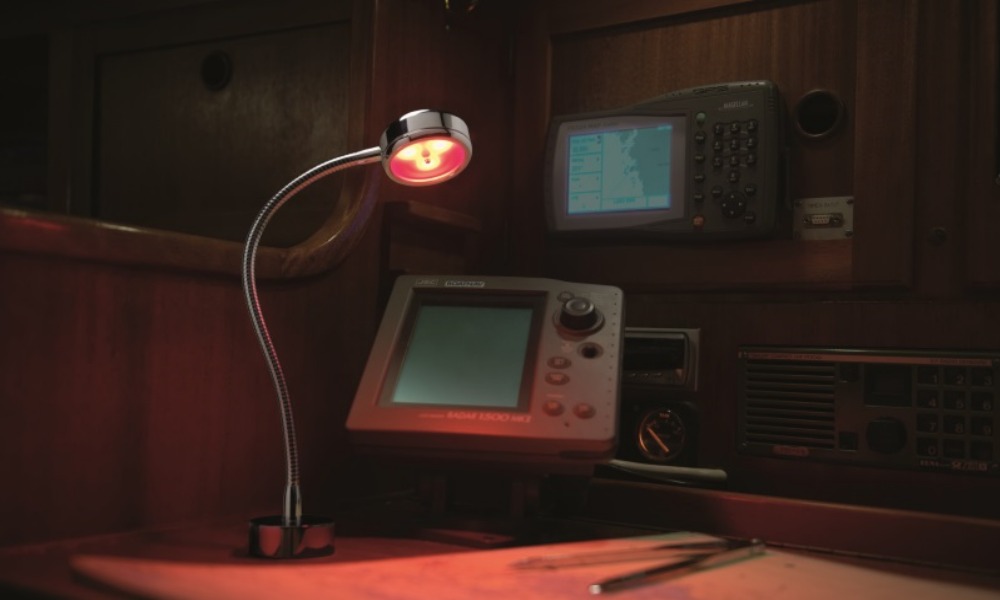 Opt for LED lights that can switch between warm white and red. Red lighting is gentle on night vision, making it an excellent feature for onboard lighting. Install red lights strategically in the ceiling or near the chart table to aid navigation at night. Dimmed floor lights also work well as nightlights, whether anchored or docked at a harbor.