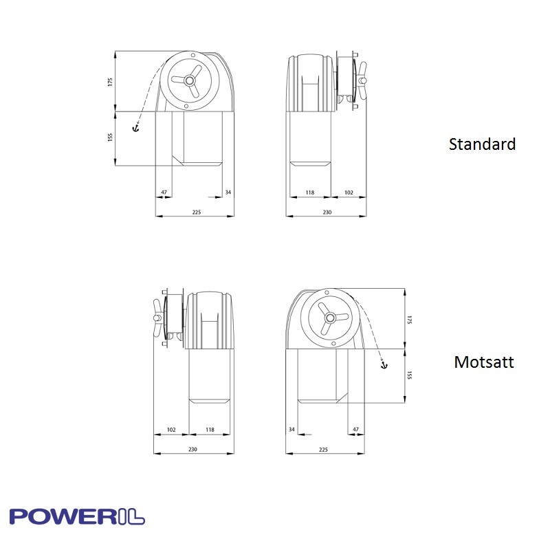 Power IL anchor windlasses are available in various models for both stern and bow mounting. The Captain M is a powerful 1000 Watt windlass suitable for boats over 3.5 tons and is designed for exterior mounting on a storage box, foredeck, or gunwale.